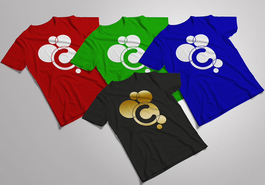 A diagramação do símbolo em conjunto com a letra “c” no logotipo cria um paralelo gráfico com o “c” maiúsculo, personalizando o lettering.
