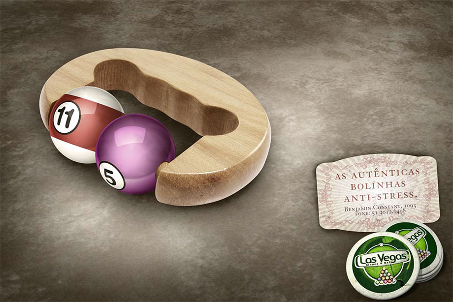 Em 1997-1999 começava a se instalar em Porto Alegre o conceito de bar pub/lounge e lugares com mesas de sinuca estavam em expansão. Neste cenário existia o Las Vegas, uma antiga casa de sinuca e bilhar na Benjamin Constant com 10 mesas oficiais. Pensando em aproveitar a tendência que surgia foram desenvolvidos nova logotipia e 2 anúncios para mostrar o Las Vegas como o lugar ideal para o happy hour e onde a sinuca era levada a sério. Os layouts são atualizações dos feitos na época.