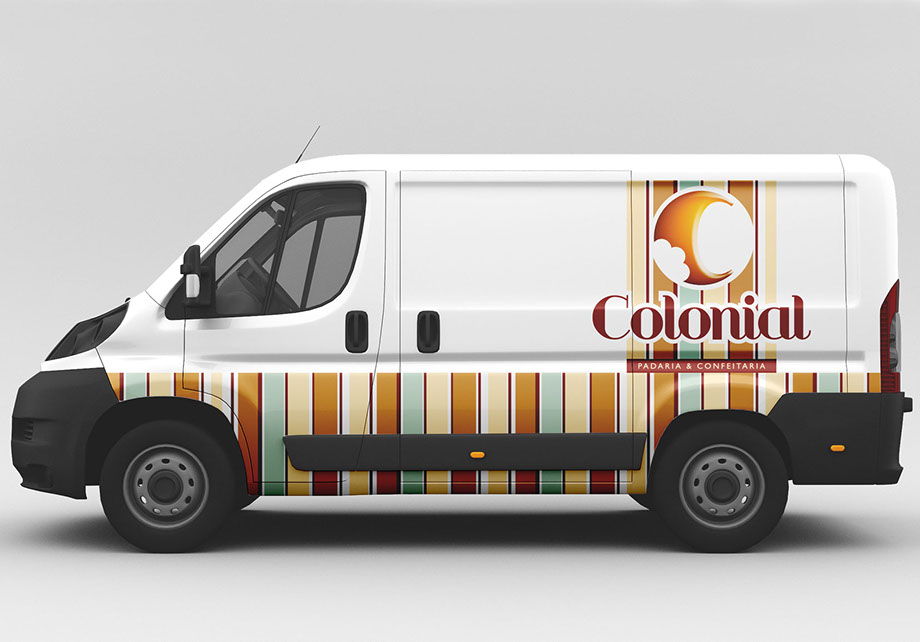 Para assinar a reforma e criação de novos serviços a Colonial Padaria e Confeitaria desejava uma nova marca que mostrasse esta evolução. Além da produção de doces, pães, salgados e tortas sob encomenda a Colonial agregaria uma cafeteria e serviços ampliados de açougue, fruteira e mini-mercado com marcas selecionadas. Apesar de ser uma loja multimodal a ideia era basear a criação da marca na padaria e confeitaria, ramo em que a marca já era reconhecida na região. A marca antiga possuía ramos de trigo, apesar de tradicional este símbolo desmerecia o trabalho da Colonial em pegar esta matéria-prima e transformá-la em produtos panificados. Por isso imaginei que o novo símbolo deveria ser direto no consumo, no prazer de degustar os produtos da Colonial. Assim surgiu a letra “C” mordida. O padrão listrado e as cores conferem um visual vintage para a marca e criam uma atmosfera de aconchego.