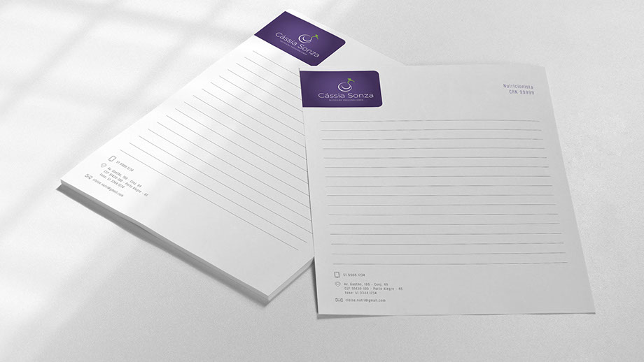 Por atuar tanto nas áreas clínica, estética e desportiva a Nutricionista Cássia Sonza solicitou um logotipo simples e clean, que pudesse atingir pacientes em todos os ramos em que atua.