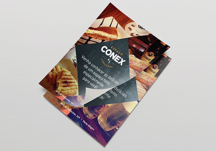 Após uma pesquisa e brainstorm, optou-se pela proposta inicial e o nome escolhido foi Espaço Conex – Coffee & Beer. Durante o projeto o nome se mostrou ser uma escolha mais do que acertada, pois se encaixou como uma luva no estilo hipster proposto para a identidade visual.