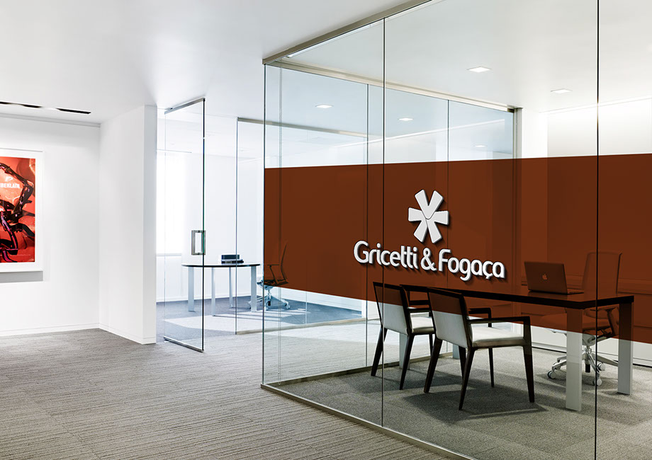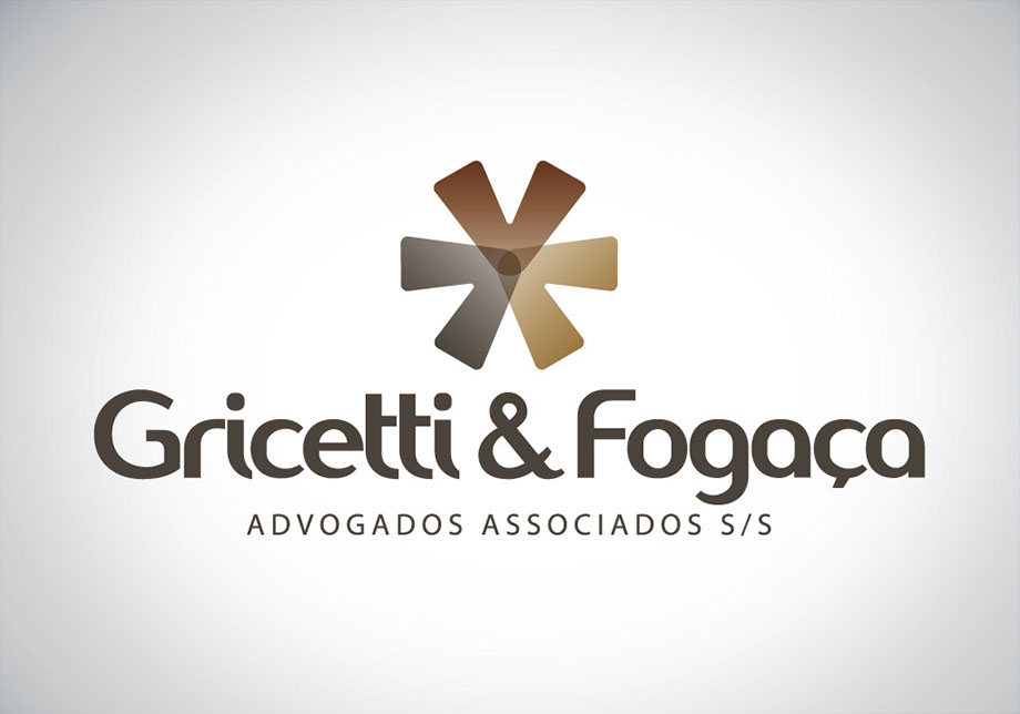 Para desenvolver a logotipia do escritório de advocacia Gricetti & Fogaça parti da percepção da grande maioria das pessoas de que o Direito se divide em 3 grandes áreas: Criminal, Cível e Empresarial. Cada área é representada por uma seta e as 3 setas convergem para o mesmo ponto, ilustrando que o escritório atua de forma abrangente. Além da representação das 3 áreas o símbolo é também um asterisco que na escrita é um caractere “coringa”, usado para mostrar que um determinado termo ou frase necessita de uma explicação mais aprofundada e também para a indicação da referência literária em que o texto ou sentença se baseia. Estes conceitos criam um paralelo com a função do advogado onde seus serviços são contratados para se aprofundar e resolver as necessidades de seu cliente, que com seu conhecimento auxilia sobre os melhores caminhos a seguir.