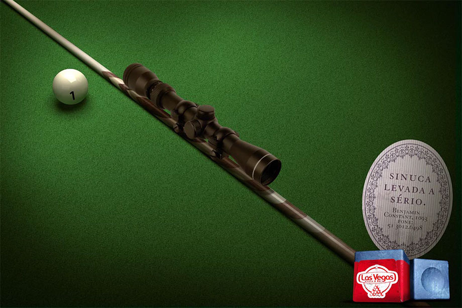 Em 1997-1999 começava a se instalar em Porto Alegre o conceito de bar pub/lounge e lugares com mesas de sinuca estavam em expansão. Neste cenário existia o Las Vegas, uma antiga casa de sinuca e bilhar na Benjamin Constant com 10 mesas oficiais. Pensando em aproveitar a tendência que surgia foram desenvolvidos nova logotipia e 2 anúncios para mostrar o Las Vegas como o lugar ideal para o happy hour e onde a sinuca era levada a sério. Os layouts são atualizações dos feitos na época.