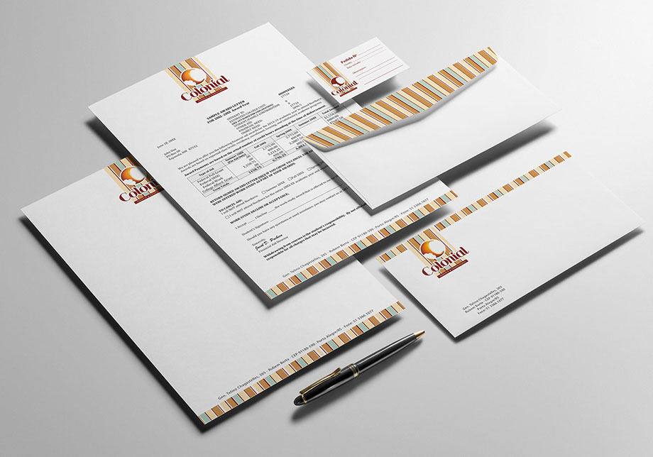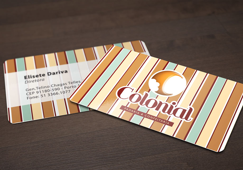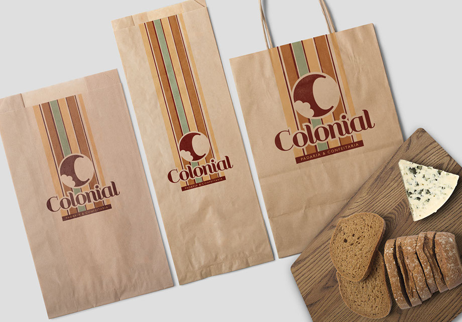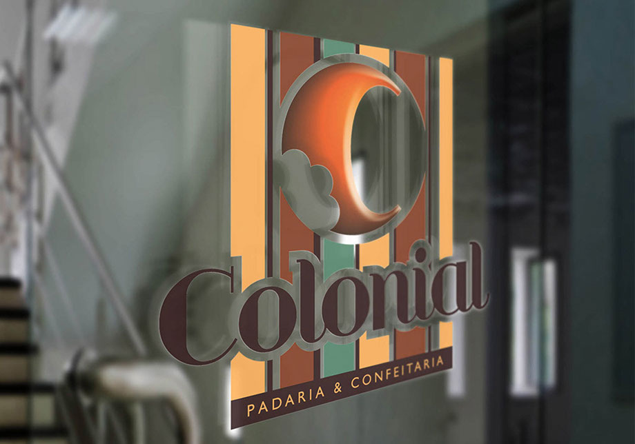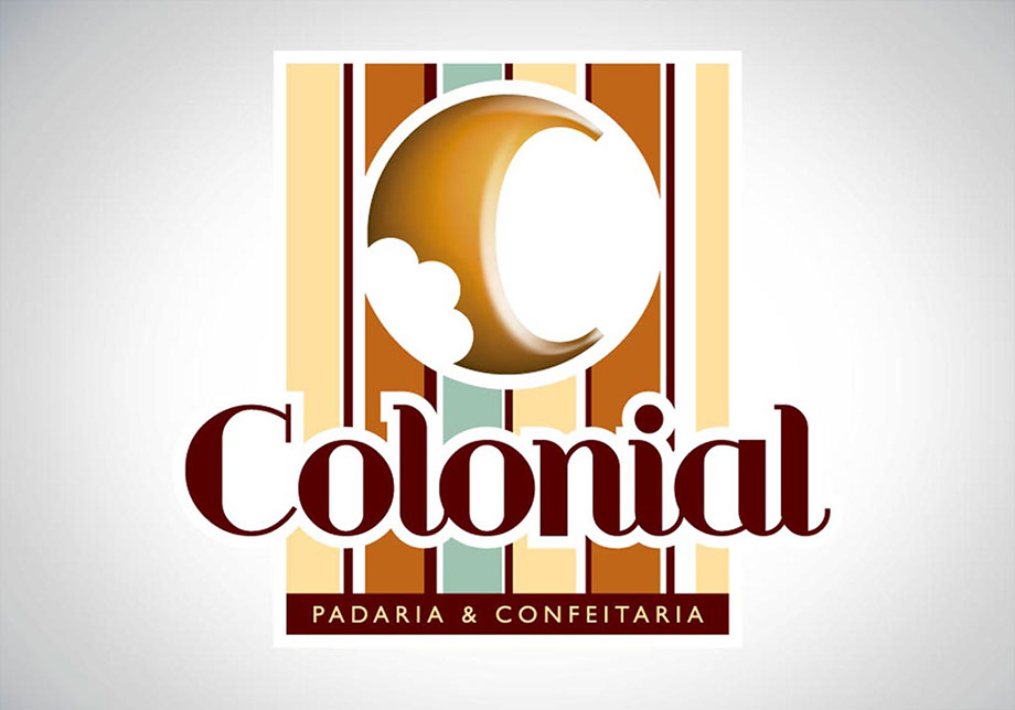 Para assinar a reforma e criação de novos serviços a Colonial Padaria e Confeitaria desejava uma nova marca que mostrasse esta evolução. Além da produção de doces, pães, salgados e tortas sob encomenda a Colonial agregaria uma cafeteria e serviços ampliados de açougue, fruteira e mini-mercado com marcas selecionadas. Apesar de ser uma loja multimodal a ideia era basear a criação da marca na padaria e confeitaria, ramo em que a marca já era reconhecida na região. A marca antiga possuía ramos de trigo, apesar de tradicional este símbolo desmerecia o trabalho da Colonial em pegar esta matéria-prima e transformá-la em produtos panificados. Por isso imaginei que o novo símbolo deveria ser direto no consumo, no prazer de degustar os produtos da Colonial. Assim surgiu a letra “C” mordida. O padrão listrado e as cores conferem um visual vintage para a marca e criam uma atmosfera de aconchego.