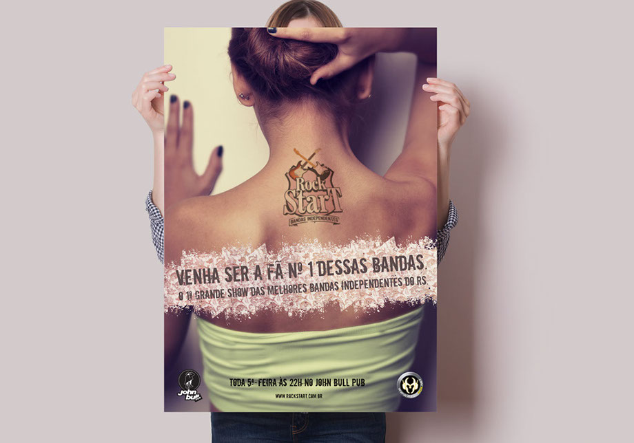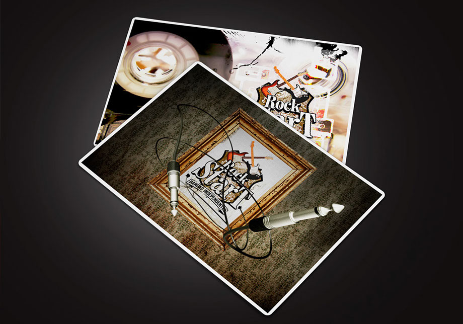 O Rock Start foi projeto pessoal de um grande amigo meu que queria dar a oportunidade para novas bandas do cenário de rock gaúcho mostrarem o seu talento. A forma em escudo e as linhas “borradas” remetem a estética underground típica do gênero. As guitarras cruzadas também sugerem uma batalha entre bandas para ver quem alcançaria o sucesso. Foram feitos flyers, cartazes e ilustração para o telão que ficava atrás da banda que estivesse se apresentando.